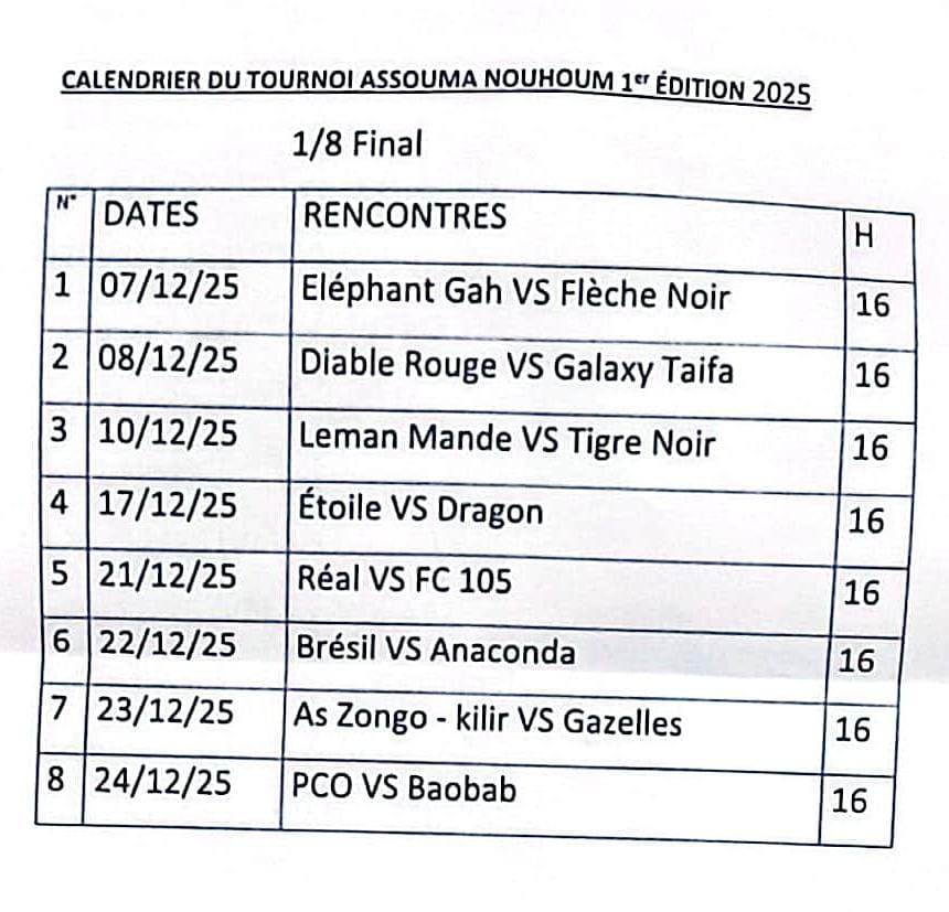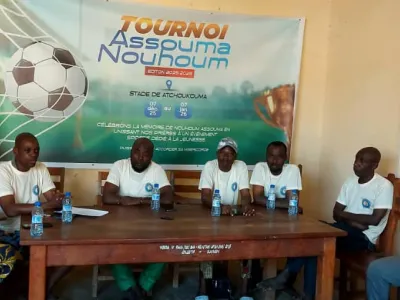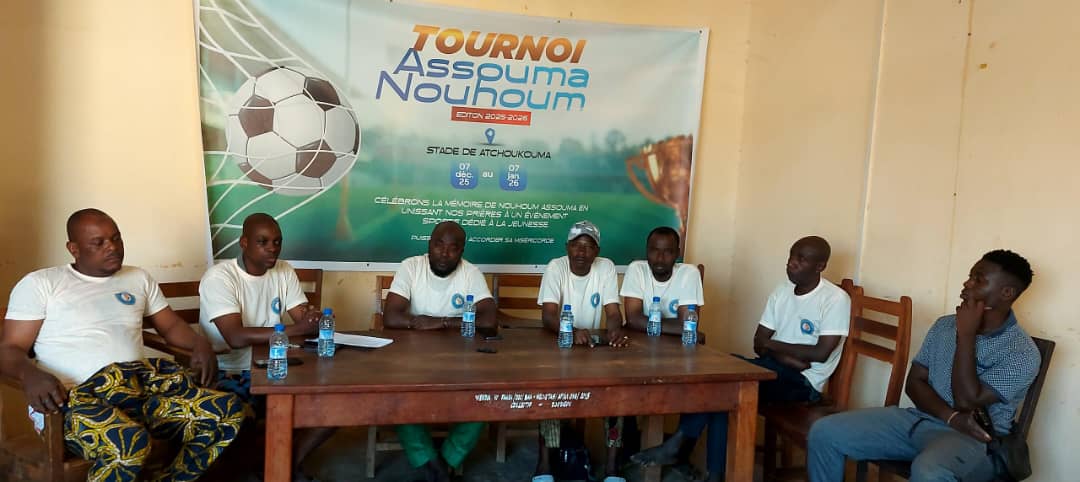 Pour honorer la mémoire de leur très cher père, Assouma Nouhoum, décédé il y a cinq ans aujourd’hui, un tournoi de football a été organisé dans la ville de Djougou. La compétition débutera ce, dimanche 7 décembre 2025, au stade Atchoucouma. A la veille du lancement du tournoi, les membres du comité d’organisation ont rencontré, ce samedi soir, les responsables des équipes engagées ainsi que la presse à l’occasion d’un point de presse. L’objectif était de rappeler les principes et les finalités de l’événement, mais aussi de sensibiliser les participants au respect des règles et du règlement intérieur qui encadrent cette compétition. Saka Sadikou, secrétaire général du comité d’organisation de la première édition du tournoi de football dénommé Assouma Nouhoum, est revenu en détail sur le règlement intérieur, les sanctions prévues et le mode de déroulement de la compétition. Cette première édition se jouera en élimination directe et réunira 16 équipes : six issues de Djougou 1, cinq de Djougou 2 et cinq de Djougou 3. Toutes les équipes participantes recevront une récompense, y compris celles éliminées dès les huitièmes de finale. Le vainqueur repartira avec le trophée ainsi qu’une enveloppe financière. Les meilleurs acteurs du tournoi seront également primés selon le comité d’organisation. Le match d’ouverture, prévu ce dimanche 7 décembre 2025 à 16 heures au stade Atchoucouma, opposera les Éléphants de Gah aux Flèches Noires de Nima. Le lundi, les Diables Rouges affronteront Galaxie de Taifa. D’autres affiches du premier tour sont également programmées.